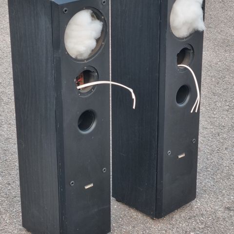 De vejer 17 kg / stk og er med fine Scanspeak basenheder og Dynaudio Esotec 260 diskanter. Kondensatorer er folie kondensatorer.