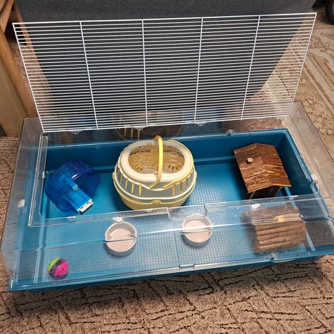 Næsten som ny stor hamsterbur med tilbehør.