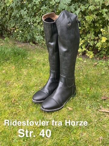 Horze ridestøvler i sort. Str 36. Klassiske, høje støvler velegnet til ridning. Fremstillet i et glat, rengøringsvenligt materiale med lav hæl og skridsikker sål. Neutralt design, der kan bruges af både børn og voksne afhængigt af størrelse. Velegnet til brug i stalden og til ridning.
