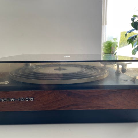 Bang & Olufsen Beogram 1000 pladespiller. Klassisk stereopladespiller med remdrev og manuelt tonearmsystem. Træfinér kabinet med sort topplade og gennemsigtigt låg. Tilsluttes via fastmonteret strømkabel og signalkabel til forstærker. Velegnet til afspilning af vinylplader i et traditionelt hi-fi anlæg. Kosmetisk i meget flot stand, men kræver en kærlig hånd, herunder evt. ny pickup og rem, men så er den også klar til de næste 60 år. Købes som beset.