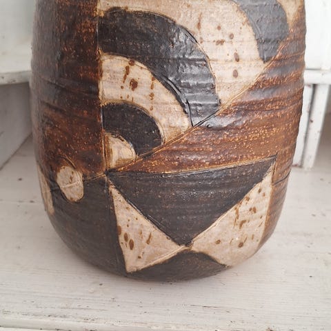 Smukt og stemningsfuldt keramisk relief af Trille Jørgensen (f. 1944) udført i brændt og delvist glaseret stentøj. Et markant og dekorativt værk med flotte jordfarver, strukturer og grafiske felter, der giver dybde og karakter til rummet.