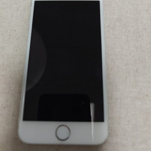 Apple iPhone 6 smartphone med 64 GB intern hukommelse. Modellen har hjem-knap med Touch ID på fronten og frontkamera samt højtaler øverst. Kabinettet er i lys farve (hvid/front i hvid med lys bagside). Velegnet til almindelige smartphone-funktioner som opkald, beskeder, internet og apps, med mulighed for lagring af billeder, videoer og apps på den indbyggede 64 GB hukommelse.