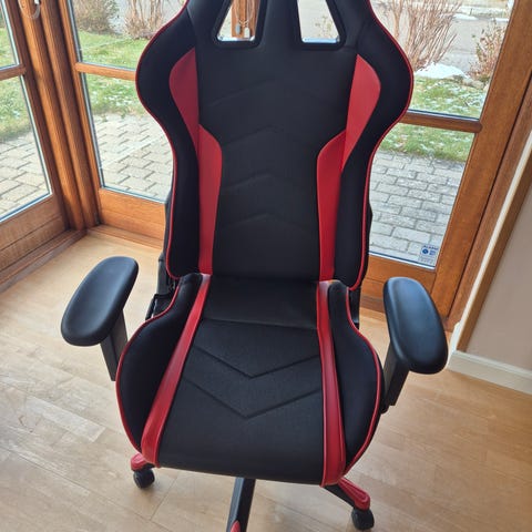Stolen er købt i 2019 og har synlige brugsspor. Fungerer dog stadig som den skal med justerbare armlæn, justerbar højde og ryglæn der kan bugges frem og tilbage. Stolen kan afhentes i Skanderborg.