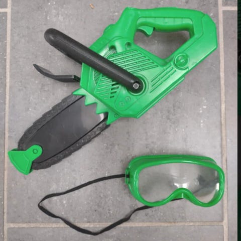 Denne legetøjskædesav er lavet af plastik og har en længde på 38 cm. Den er designet i grøn med sorte og orange detaljer, der efterligner udseendet af en rigtig motorsav. Legetøjet er egnet til rolleleg og understøtter fantasifuld leg for børn.