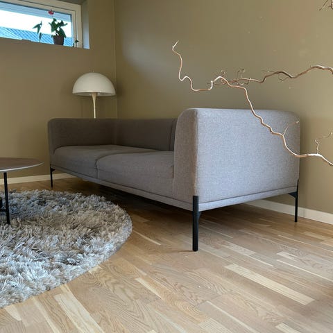 Sofaen trænger dog til en rigtig god sofarens for at fjerne pletter (har forsøgt at fange på billedet). Jeg har selv renset den før, og den bliver utrolig flot i stoffet. Stoffet er ikke falmet. En sofa i rigtig god stand, men hvor stoffet skal renses.