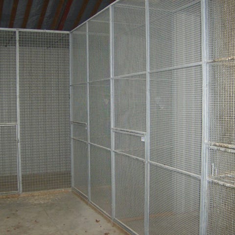Det hele afmonteres og pilles ned i forbindelse med flytning. Toppen/taget er i et stykke. Uden volierenet, dør og bundrem kan der slås 1000 kr af prisen.