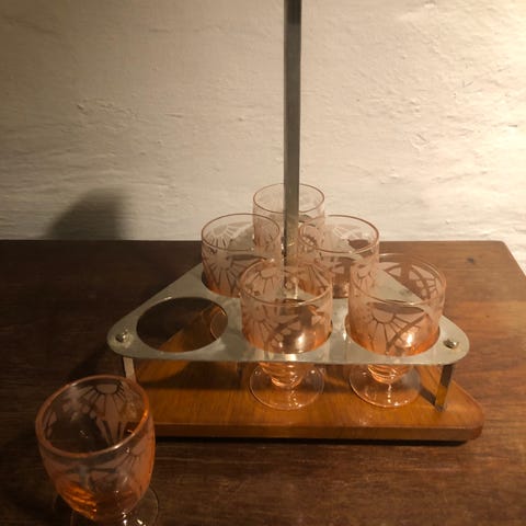 Vintage likørglas— på stilk- slebet glas- Art Deco- ca 1930-1950
