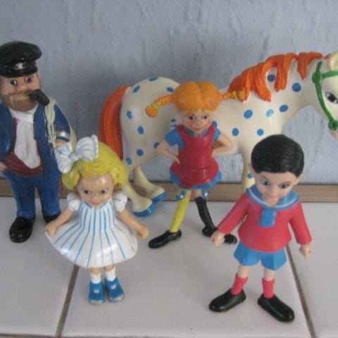 Fine små vintage figurer af Pippi langstømpe og Annika af Astrid Lindgren