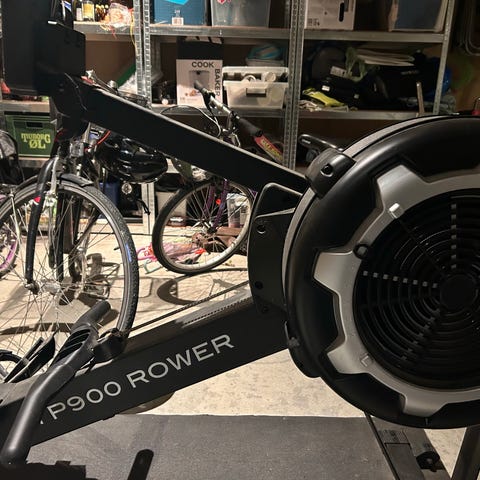 P5000 Rower romaskine med indbygget træningscomputer og fodstøtter med justerbare remme. Maskinen har glideskinne med sæde, håndtag foran displayet og stabil ramme, egnet til indendørs konditions- og styrketræning af hele kroppen.