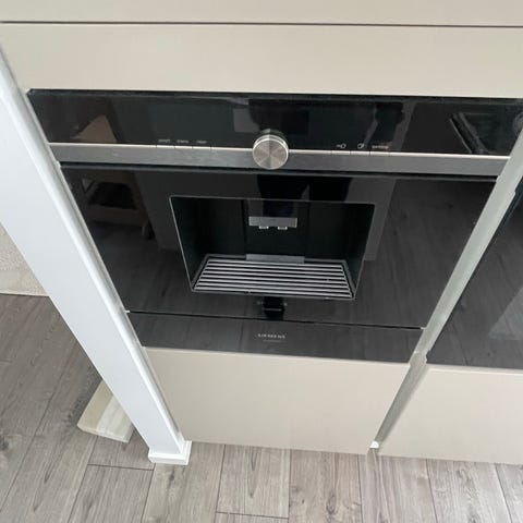 Det er en maskine designet til at blive bygget ind i et køkken, hvilket giver et integreret og stilfuldt udtryk.