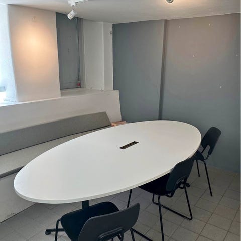 Inventarland mødebord og 6 kontorstole i sort. Sættet består af et mødebord med hvid bordplade samt 6 kontorstole. Stolene har polstret sæde og ryg i sort materiale med kromfarvede armlæn og ben på hjul. Velegnet til mødelokale eller kontorindretning, hvor der er behov for et samlet bord- og stolesæt. Købt i april 2025. Ny pris kr 20.595.