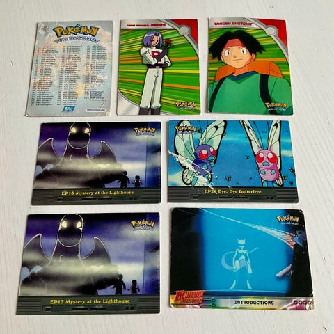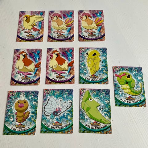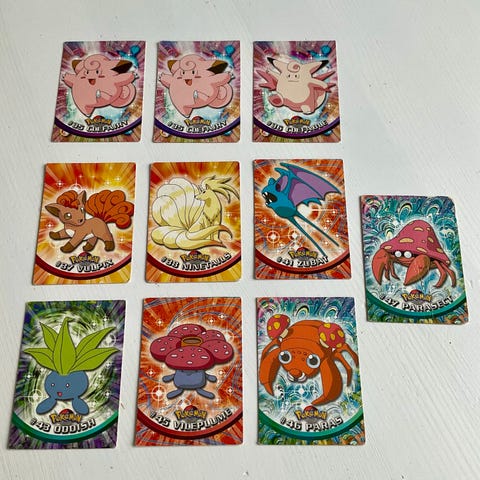 Sælger disse Pokemon Topps Serie 1 kort, da de er dubletter i min samling. Se standen ud fra billederne. Prisen er for dem alle. Kommer fra et dyre- samt røgfrit hjem.