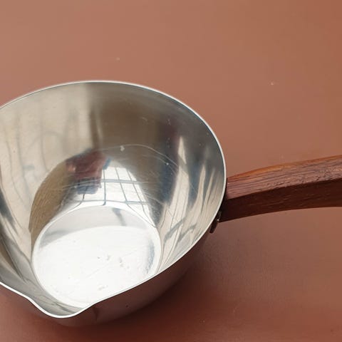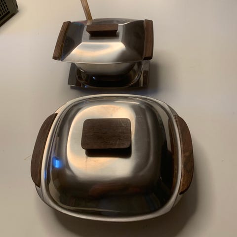 Vintage sovseskål med teak håndtag og låg
