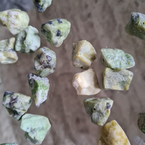 Der er 22 stk store og flotte citrin sten perler med hul i, de er også 2 cm lange og 1 cm brede. Sælges samlet