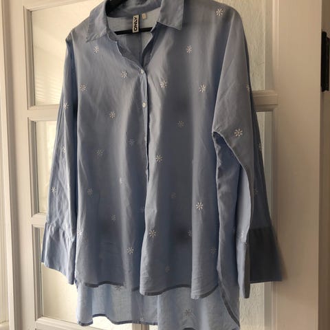 ONLY skjorte til kvinder i str. 42. Skjorten er multifarvet med blomsterprint og er fremstillet i polyester. Klassisk skjortemodel med krave og knaplukning foran samt knapper ved ærmerne. Egnet til hverdagsbrug eller som let overdel. Kan leveres gratis til Esbjerg Havn, efter aftale.