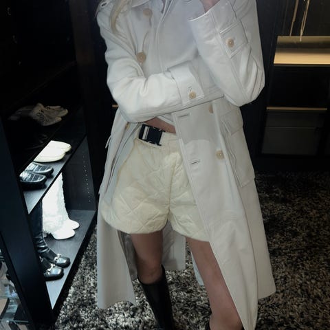 Råhvide shorts fra REMAIN Birger Christensen. De har et quilted mønster, sidelommer og et sort justerbart spænde med logo. Str. EU36. De måler ca. 38 cm i bredden og ca. 40 cm i længden (se bilede med mål).