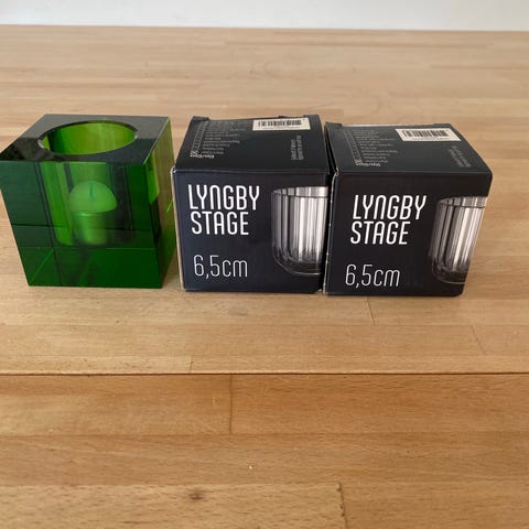Dette er et sæt af tre Lyngby lysestager i glas. De tre stager har forskellige nuancer: en klar, en sort og en mat glas. De er alle i en cylindrisk form med en bredde på 6,5 cm, passende til små fyrfadslys. Designet er klassisk og enkelt, hvilket gør dem velegnede til forskellige indretninger.