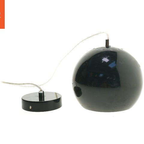 Denne lampe er en grå pendel med en enkelt sort kabel til tilslutning. Den har et enkelt design med en glat overflade og små huller i toppen af lampeskærmen, der kan fungere som ventilationsåbninger. Lampen har en rund form og måler 14x14 cm. Den er velegnet til at blive monteret i loftet og kan give direkte belysning. Tags: lampe, pendel, belysning, grå.