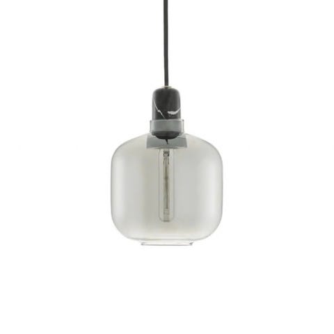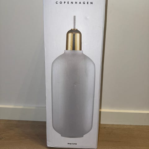 Normann Copenhagen Amp pendel i lille størrelse i farven hvid med messingdetaljer. Lampen har et afrundet glas-skærm og en fatning i messing, der giver et enkelt og moderne udtryk. Velegnet som belysning over bord, i gang eller som punktbelysning i mindre rum. Kan bruges alene eller i kombination med flere pendler i samme serie.