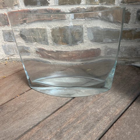 Glasvase lavet af klart glas med en rund form. Størrelsen på vasen er Ø 14 x 15 cm, hvilket gør den velegnet til mindre blomsterarrangementer eller som en dekorativ genstand i indretningen.