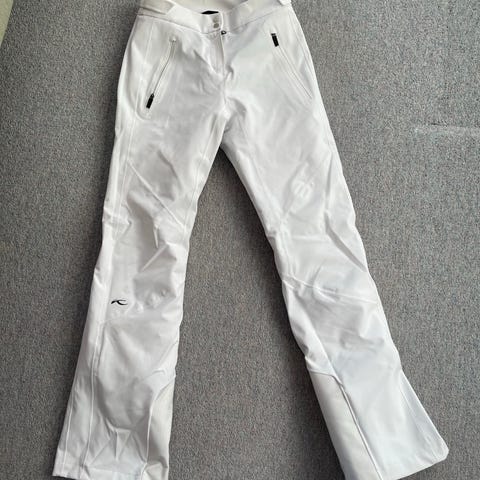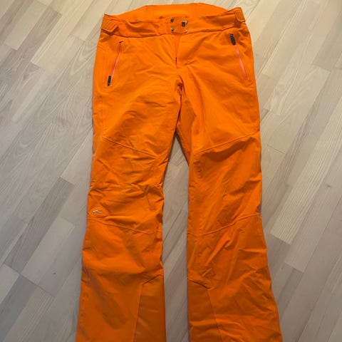 Kjus skibukser i rød med sorte forstærkninger nederst på benene. Bukserne er i str. 152 og egner sig til børn. Velegnede som skitøj eller til brug i koldt og vådt vejr. Materiale er ikke angivet på mærket, men bukserne fremstår som tekniske skibukser med justerbar talje og formsyede knæ for bedre bevægelsesfrihed.