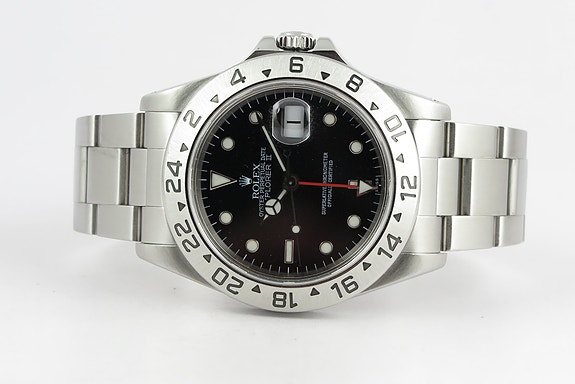 Nyeste model af Explorer 42 med sort skive. Uret måler 42 mm og er med automatisk optræk.Meget lidt brugt - delvis plastik på.
