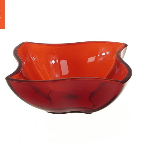 Dette er et dekorativt håndlavet glasfad med en diameter på 20 cm og en højde på 3 cm. Farvet i levende nuancer af blå, orange og gul, har fadet et abstrakt mønster, der kan bringe et farverigt præg til enhver indretning. Fadet er velegnet som en dekorativ skål eller til servering af tørre snacks.