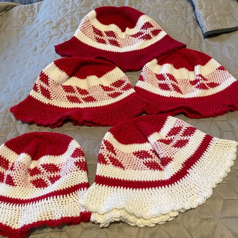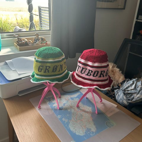 Hjemmehæklet bøllehat, Pride. Til hende og ham. Str 52. Er til salg flere steder. Kan leveres gratis til Esbjerg Havn.
