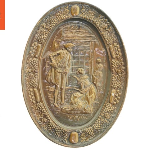 Dette er et sæt af to runde plader lavet af sølv. De har en diameter på 13 cm og en højde på 1,5 cm. Pladerne har en glansfuld finish med nogle tegn på brug på overfladen. De kan bruges til at holde mindre genstande eller til dekoration i hjemmet.