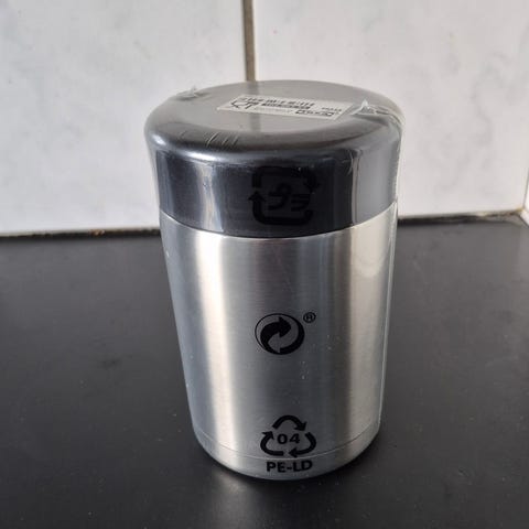 En rustfrit stål termoflaske fra Emsa med en kapacitet på 0,5 liter. Flasken har en skruelukke med en rød knap og et aftageligt metal låg, som også fungerer som en kop. Den er designet til at holde varme og kolde drikke ved den ønskede temperatur i længere tid. Størrelsen på flasken er Ø 7,5x24 cm.