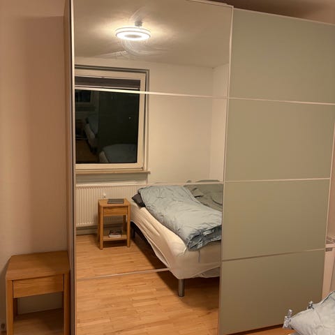 Stort garderobeskab på i alt 3 meter . Masser og masser af plads . Helt uden brugsspor. Er overhovedet ikke falmet, da det ikke har fået sollys.