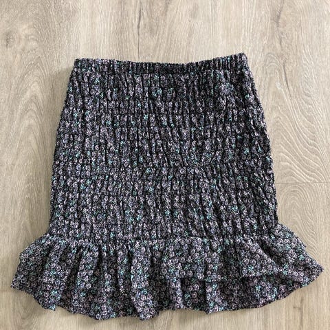 En børnenederdel i en lys cremefarve med små, diskrete prikkede detaljer. Nederdelen har et elastisk bånd omkring taljen, hvilket gør den let at tage på og komfortabel at have på. Stoffet har en let gennemsigtig ydre lag, som giver et luftigt udseende.