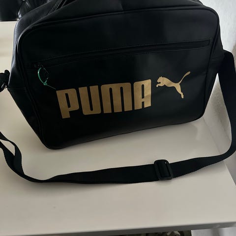 Puma taske retro. Tasken har et rektangulært design med stort Puma-logo på forsiden. Den er udført i gul kunstlæder med justerbar skulderrem. Egnet til daglig brug, sport eller som mindre rejsetaske, hvor der er behov for plads til personlige ejendele. Kan evt. Leveres til Esbjerg Havn. Er til salg flere steder.