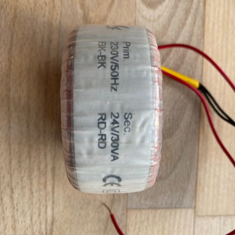 Ulveco toroidetransformer til netspænding 230V, 50–60 Hz. Transformeren har to sekundærudgange: 24V / 2,1A (rød til rød) og 12V / 3,3A (sort til sort). Leveres med monteringssæt bestående af bolt, skive og isolerende plader til fastgørelse i kabinet eller på chassis. Velegnet til elektronikprojekter og strømforsyninger, hvor der er behov for både 24V og 12V lavspænding.