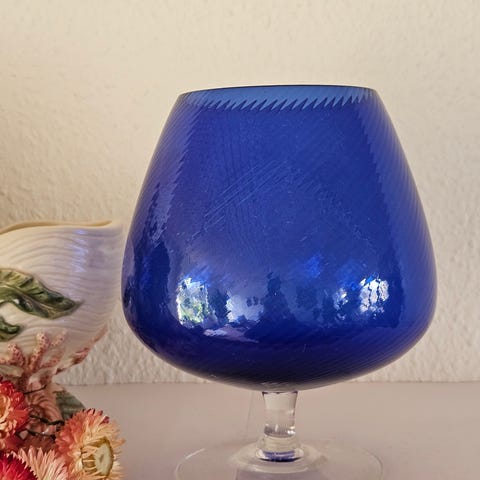 Aquamarine, krystalglas vase. 12cm høj i perfekt stand.