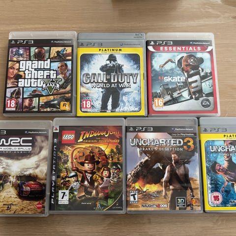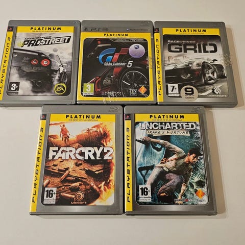 Fem PlayStation 3-spil i Platinum-udgaver sælges samlet. Alle spil er komplette med manualer, og discene er i perfekt stand (10/10).
