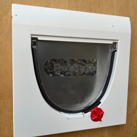 Pet Zone kattelem i hvid plast med tunnel til montering i døre og vægge med en tykkelse på ca. 10–45 mm. Kattelemmen har gennemsigtig klap og manuelle låsefunktioner, så adgangen kan indstilles efter behov. Velegnet til almindelige huskatte og mindre kæledyr, der skal have mulighed for selv at gå ind og ud.