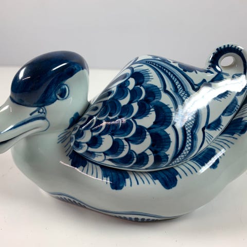 En skål lavet af porcelæn med blå blomstermotiver. Skålen har en bølget kant og står på fire ben. Bunden af skålen viser producentens stempel og serienummer: 1788. Målene er 9x22x17,5 cm. Skålen er designet til dekorativ brug eller servering.
