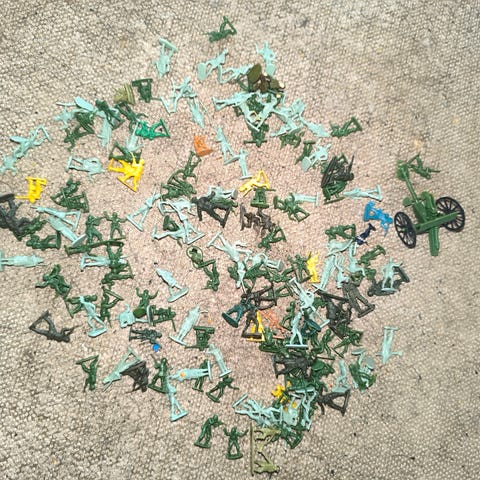 - Indeholder: ca. 240 soldater, tanke, biler, fly, træer, raketter, våben