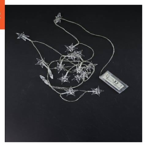 En lyskæde bestående af 10 klare pærer med en batteriboks til strømforsyning. Ledningen er sølvfarvet, og pærerne er formet i traditionel glødepære stil. Batteriboksen kan rumme batterier, som driver de tilsluttede pærer.