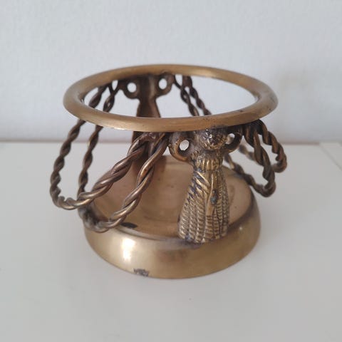 Vintage Vinflaske holder i træ og messing (str. 15x15 cm)