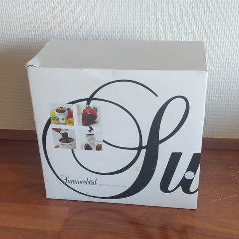 Elektrisk chokoladesmelter fra Kokkenchef med en kapacitet på 250 ml. Apparaturet har to varmefunktioner til at smelte og holde chokolade flydende. Der medfølger en ske, 10 plastikpinde og 10 plastgafler. Velegnet til at dyppe frugt, skumfiduser og andet i smeltet chokolade. Effekt på 25 watt.