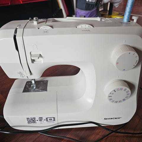 Symaskine med mekanisk betjening og fodpedal. Maskinen har indbygget opbevaringsrum til smådele, hvor der medfølger spoler, skruetrækker og mindre tilbehør. Der medfølger desuden et sæt farvede sytrådsspoler samt en beskyttende opbevaringspose. Egnet til almindelige syopgaver i hjemmet som oplægning, reparationer og simple syprojekter.
