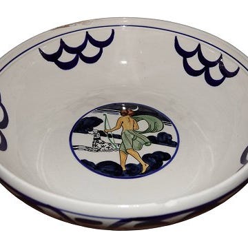 Smuk sjælden smørskål fra Aluminia. Motivet har jeg set både omtalt om “hellig tre konger” og “tre vise mænd”. Den er i god stand og har ikke alderskrakelering. Antik K har en lignende til salg til 1200 kr. for reference.