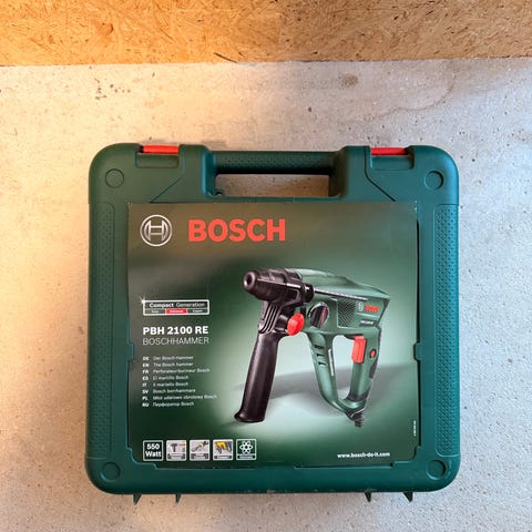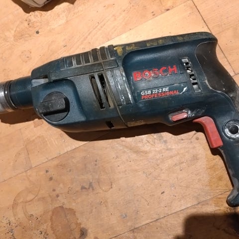Kraftig, batteridrevet borehammer, der fungerer fint. Batteri medfølger ikke. Bemærk, at der er stemplet initialer i den ene side af maskinen. Kan sendes med posten.
