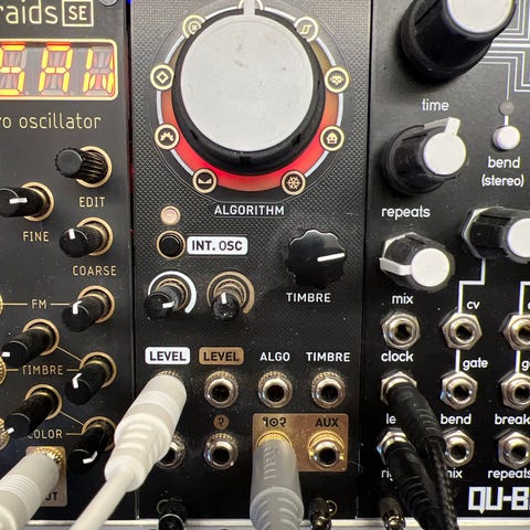 Dradd Eurorack modul synthmodul i sort frontpanel. Modulet har flere drejeknapper til styring af blandt andet modulation, clock og forskellige lydtilstande samt flere jack-indgange og -udgange i bunden til patchkabler. Egnet til integration i et Eurorack-modulsystem til lyd- og effektbearbejdning.