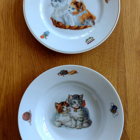Tallerken ø 21,5 cm, æggebæger H: 6 cm. Småfejl i produktionen - se foto.