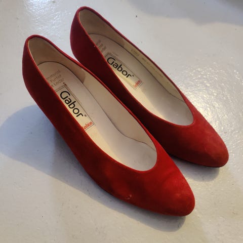 Gabor festsko til dame i str. 39. Skoene har spids snude, åben hæl med rem og mellem høj hæl. Farven er beige med brune/bronze detaljer. Velegnet som pæne sko til fest og andre formelle anledninger.