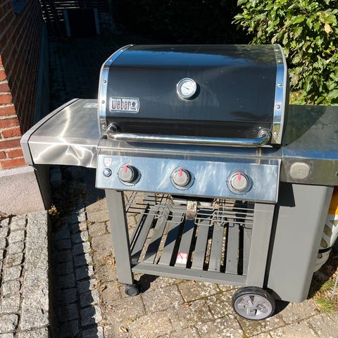 Weber Traveler gasgrill i sort. Transportabel grill med integreret understel og hjul, der kan klappes sammen for nem opbevaring og transport. Grillen har låg med indbygget termometer og sidebetjent gasregulering. Velegnet til udendørs madlavning, camping og ture, hvor der er behov for en kompakt gasgrill. STÅR SOM NY. BRUGT 3 GANGE. ÅBEN FOR SERIØST BUD.