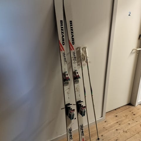 Ski med bindinger. Alpinski egnet til kørsel på pister. Skiene har monterede bindinger, som kan justeres til passende støvlelængde inden brug. Velegnet til almindelig alpint skiløb.
